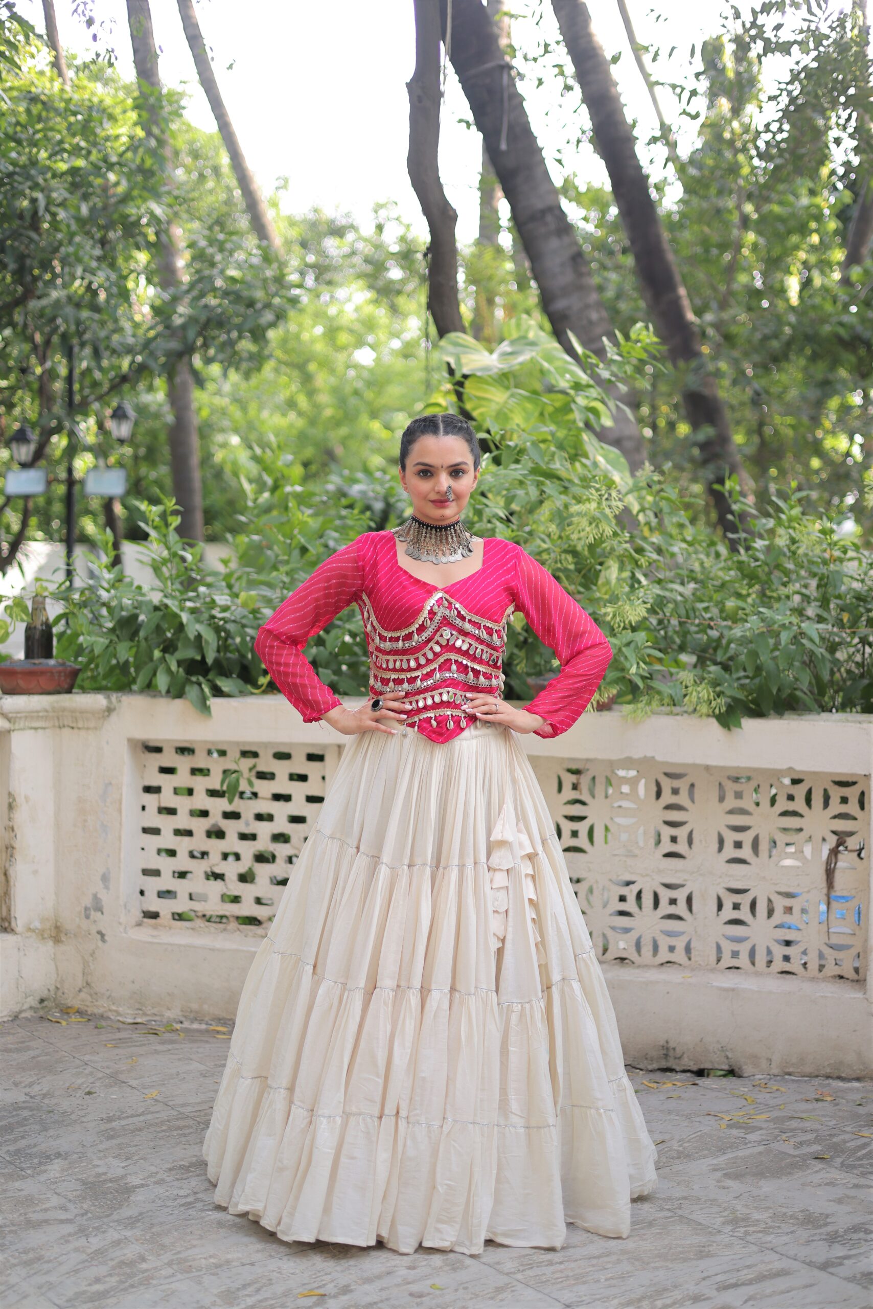 - 🌸 Lehenga Fabric: Premium Kora Cotton for a rich & elegant look