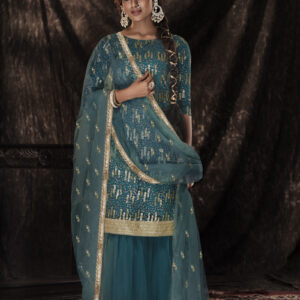 ✨ Elegant Sharara Suit featuring delicate sequin work, crafted in premium fabric with a graceful flair — perfect for festive and wedding occasions.
