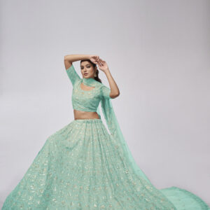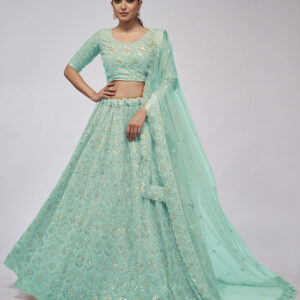 Be the first to review “Graceful Net Fabric Sea Green Lehenga With Sequins Work for Women”