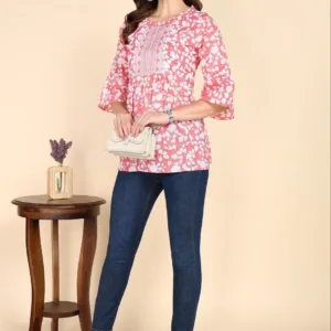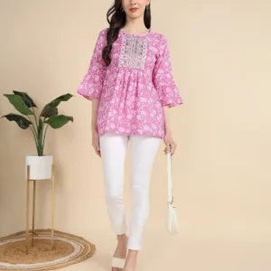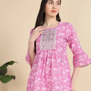 | PRT29911 | Pink and White | Ruby Cotton | S (36), M (38), L (40), XL (42), XXL (44) | Beautiful Embroidery Work |