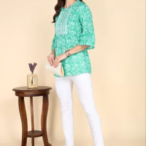 | PRT29906 | Green and White | Ruby Cotton | S (36), M (38), L (40), XL (42), XXL (44) | Beautiful Embroidery Work |